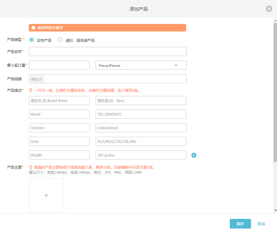 第一步,PA真人视讯外贸通客户后台打开云邮通,创建开发信模版并填写产品详细信息。