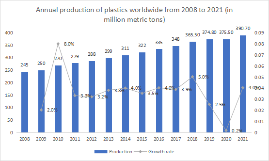 据统计,全球塑料产量2008-2021逐年增长,年复合增长率为4.5%;预计未来全球塑料产能持续增长,至2050年有望达到5.89亿公吨的产能。