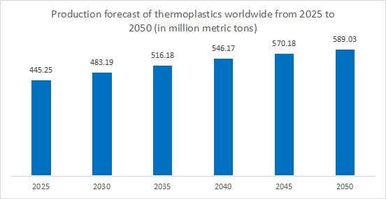 全球塑料需求呈现稳定增长态势。根据欧洲塑料制造商协会发布的数据,全球塑料产量和消费量将持续增长,2020年产量为3.67亿吨,人均消费量46公斤,预计到2050年,塑料产量将达到11亿吨。